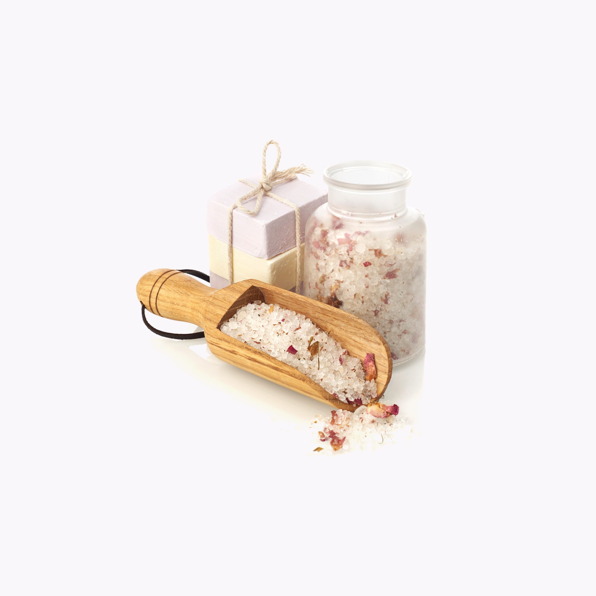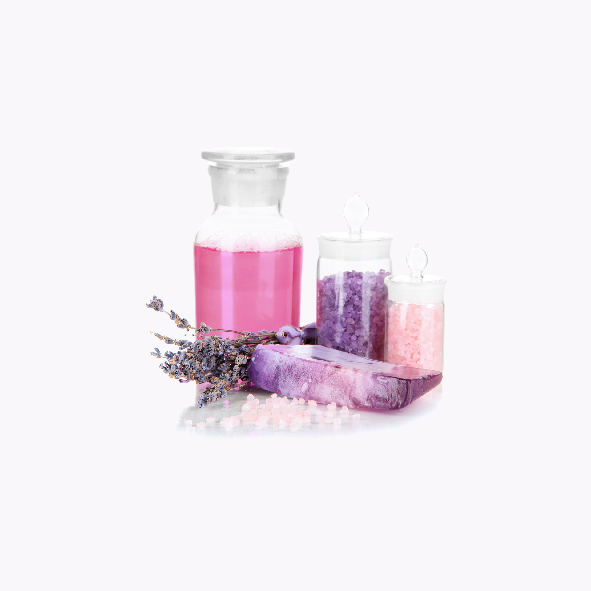Levandulový olej, sůl a mýdlo