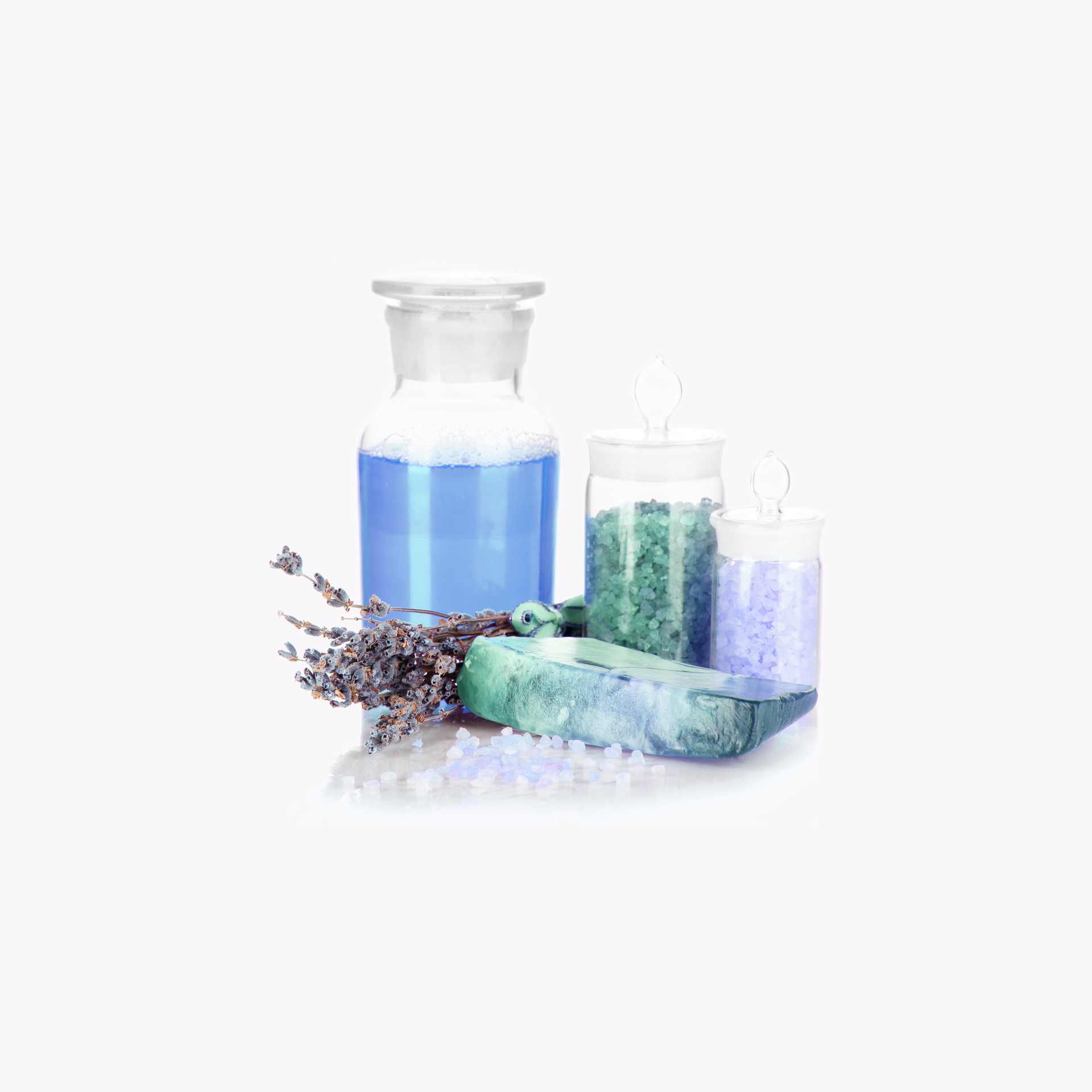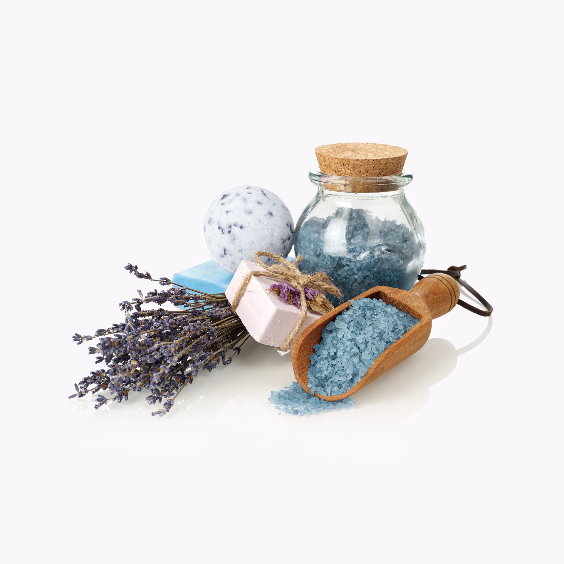 Levandulový olej, sůl a mýdlo