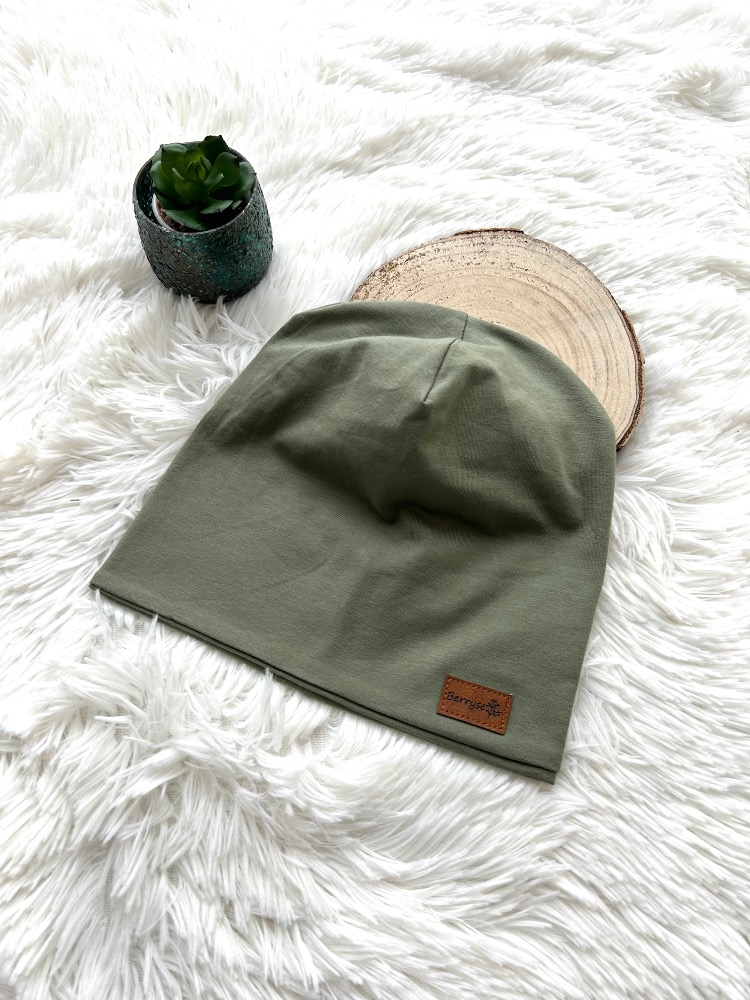 Čepice z hladkého úpletu khaki