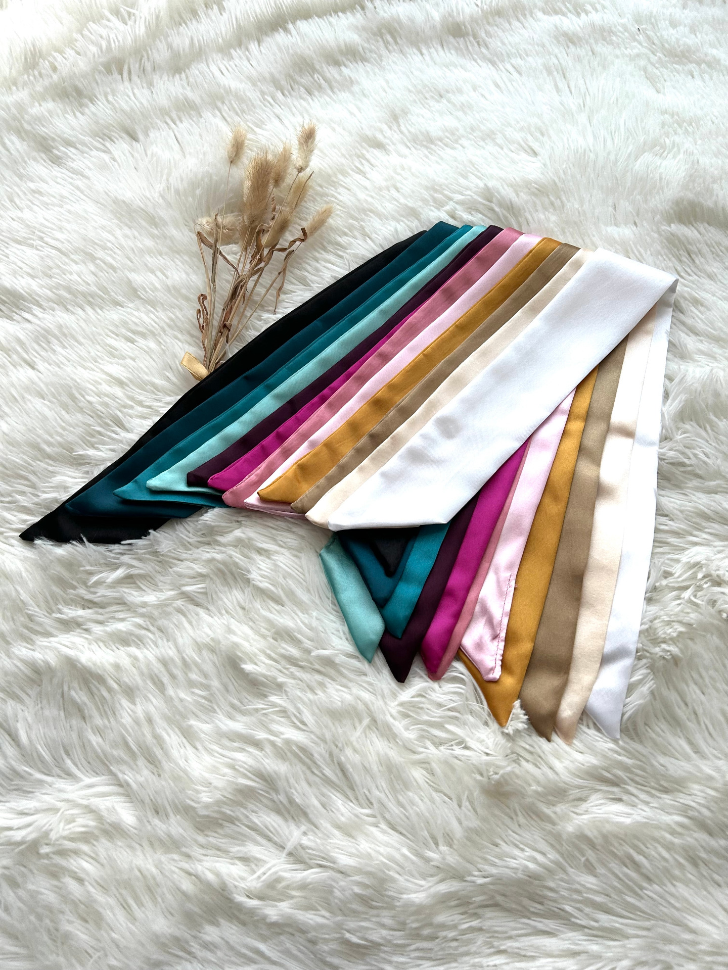 - elegantní šátek ušitý z lesklého saténu k letním šatům nebo jen tak do práce, do společnosti s kamarádkou, oživí váš outfit