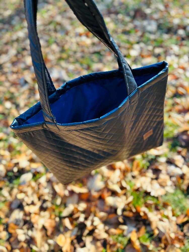 Taška prošívaná metalická modrá